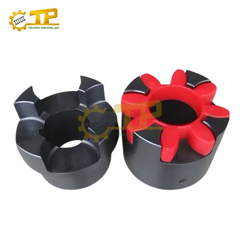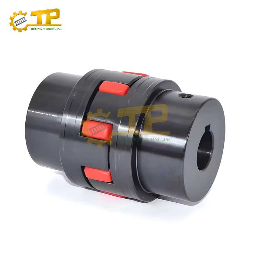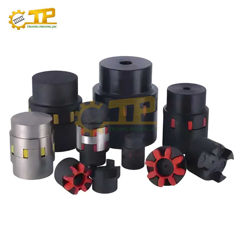 Khớp nối GE (Jaw Coupling) là loại khớp nối trục đàn hồi, sử dụng đệm cao su (spider) đặt giữa hai nửa khớp để truyền mô-men xoắn giữa hai trục. Nhờ lớp đệm này, khớp nối GE có khả năng giảm rung, giảm sốc và bù sai lệch trục trong quá trình vận hành.