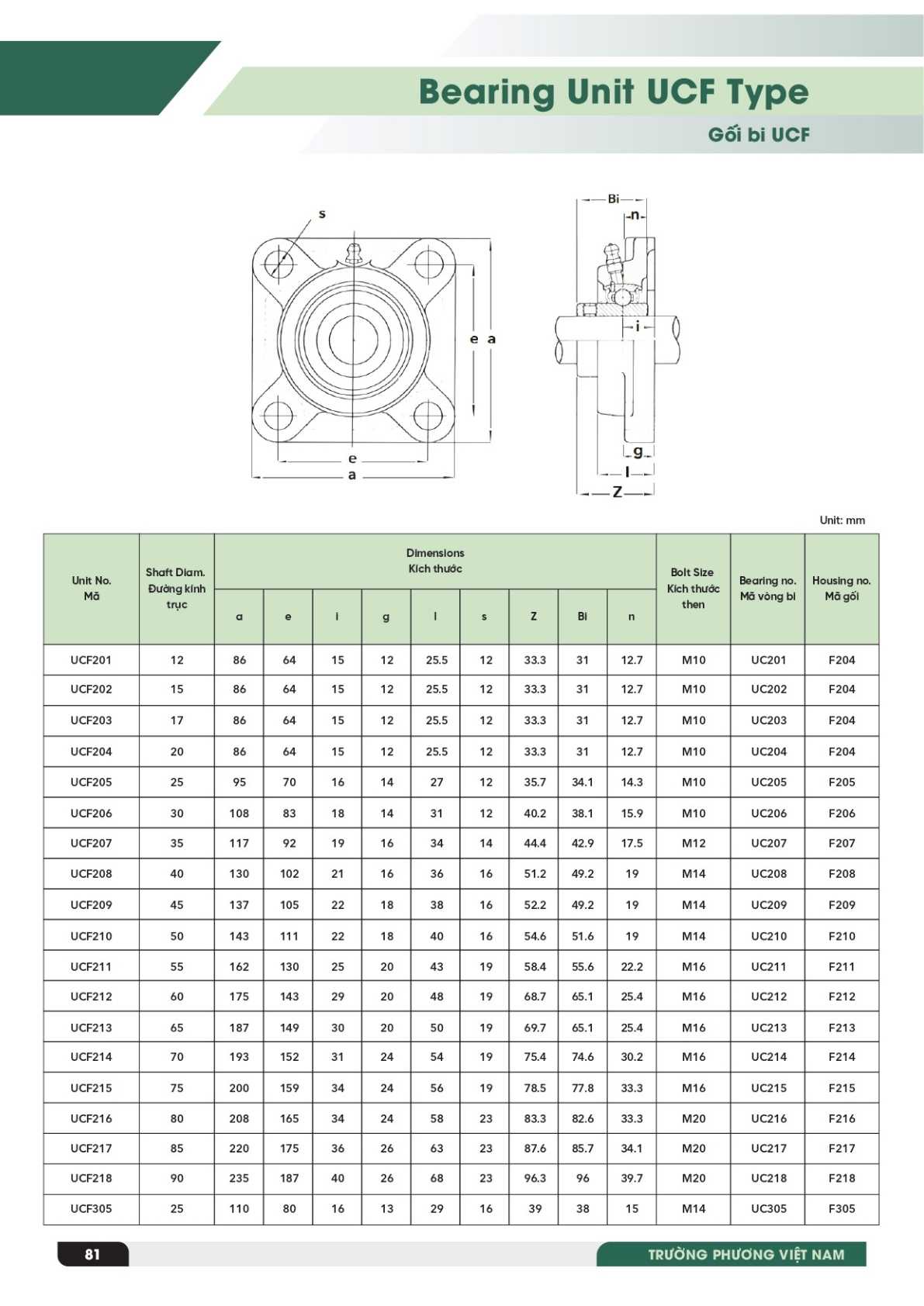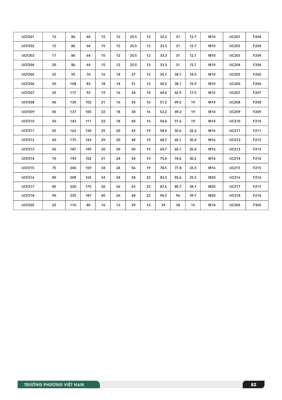 Trường Phương cung cấp gối đỡ UCF có đầy đủ các size tiêu chuẩn sau: UCF201, UCF202, UCF203, UCF204, UCF205, UCF206, UCF207, UCF208, UCF209, UCF210, UCF211, UCF212, UCF213, UCF214, UCF215, UCF216, UCF217, UCF218