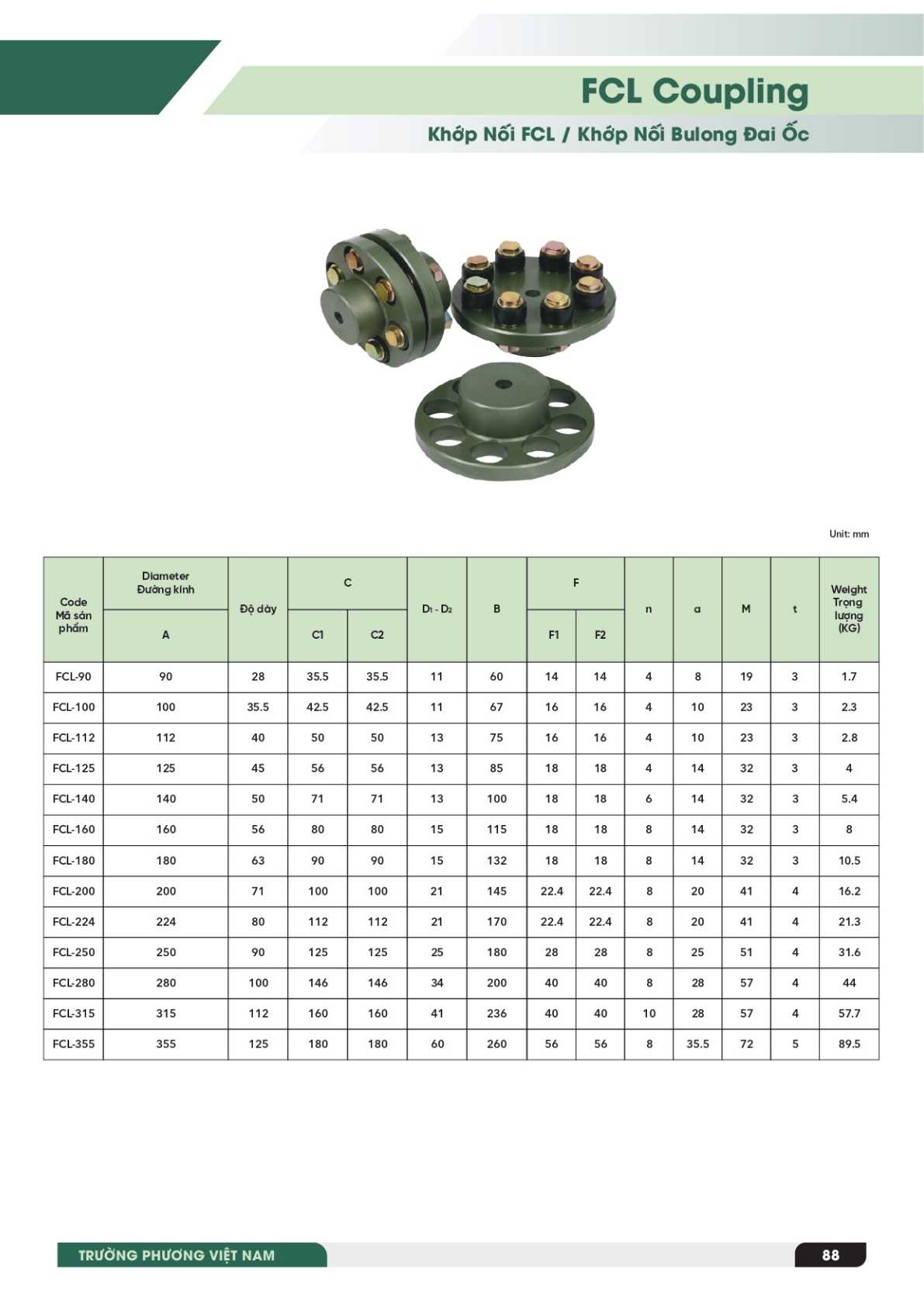 Công ty Cổ phần Trường Phương Việt Nam cung cấp khớp nối bulong FCL với đầy đủ kích thước tiêu chuẩn, đáp ứng nhu cầu từ hệ thống truyền động nhỏ gọn đến thiết bị công suất lớn.