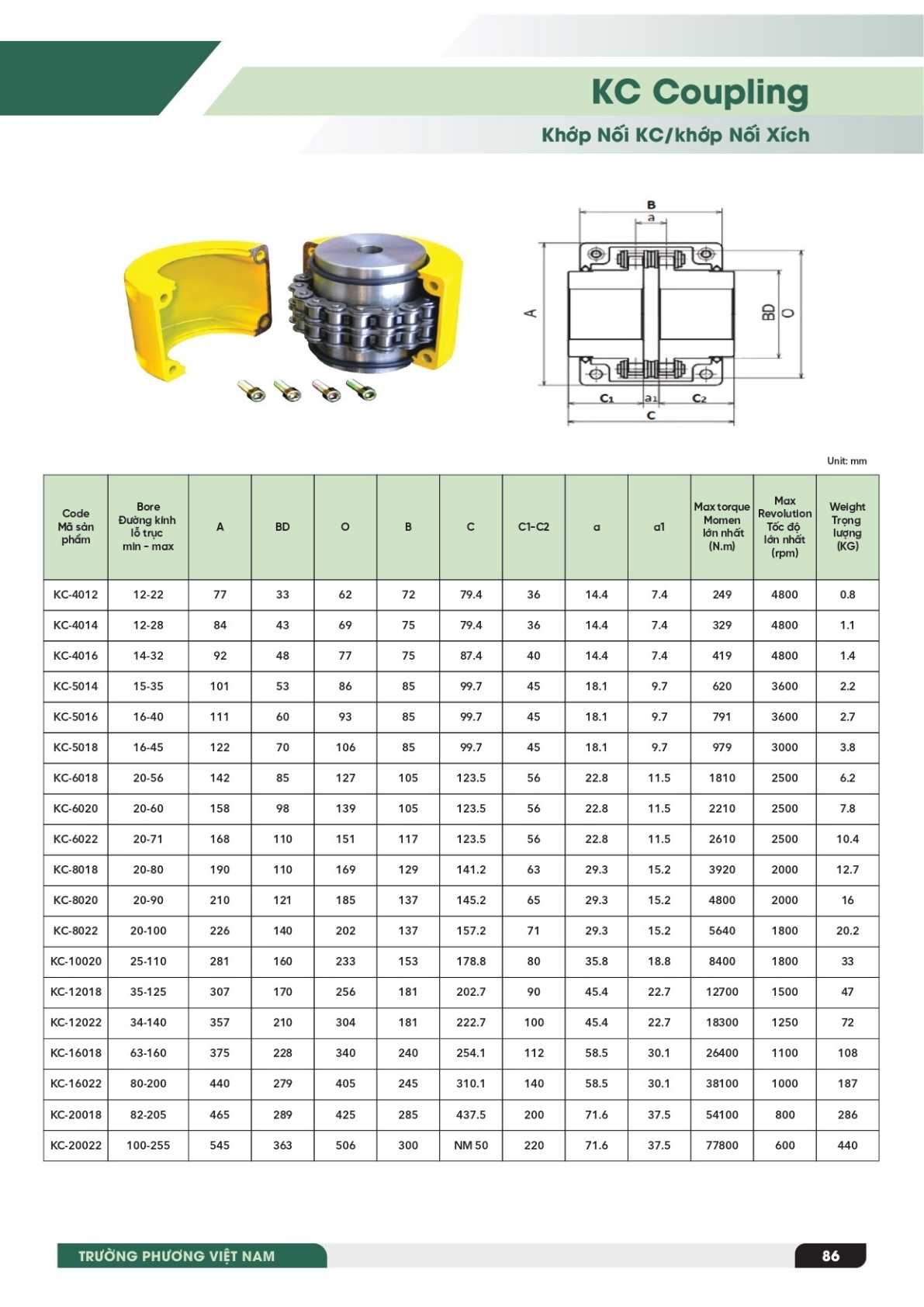 Trường Phương cung cấp khớp nối xích KC (Chain Coupling) với đầy đủ các size tiêu chuẩn: