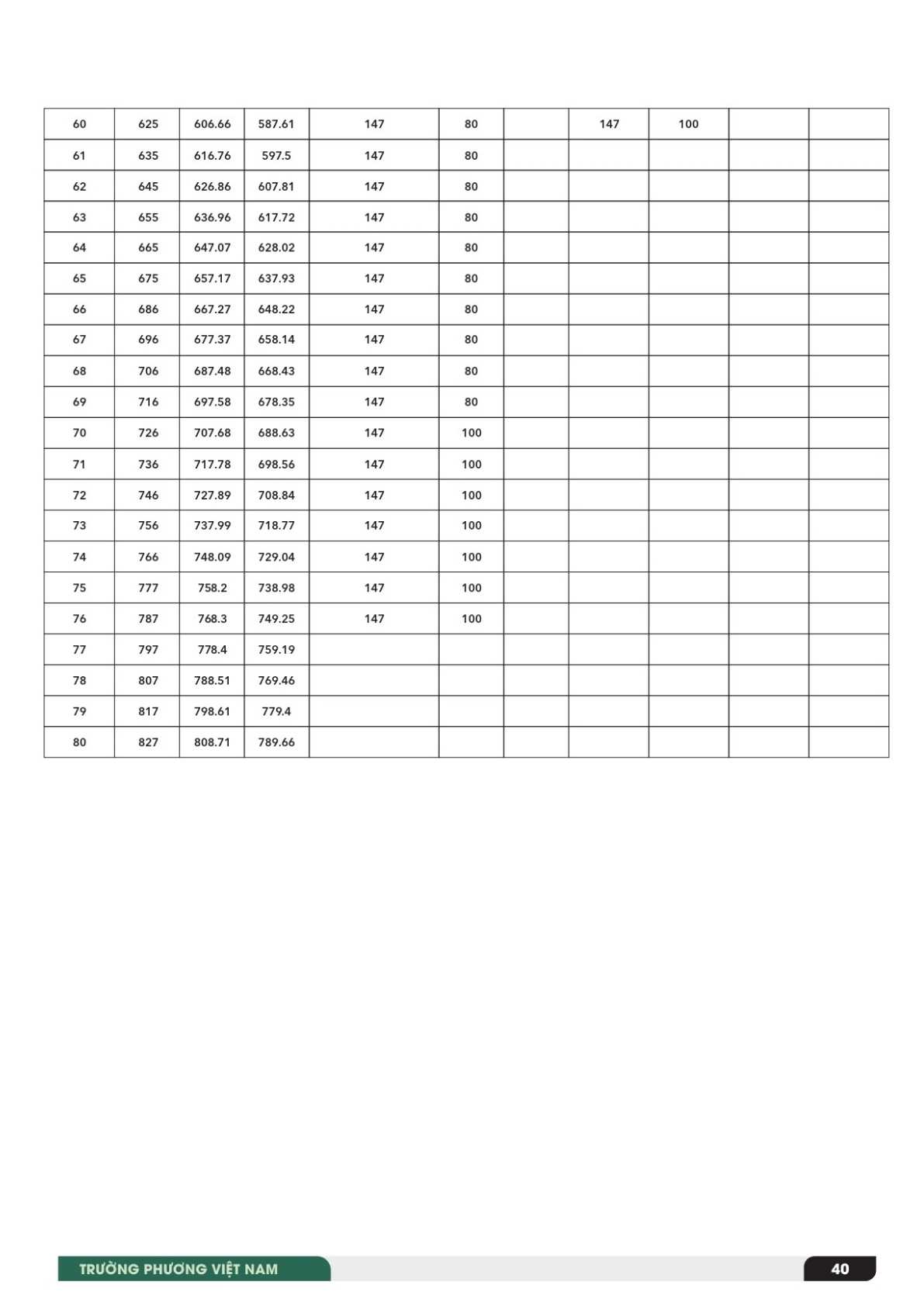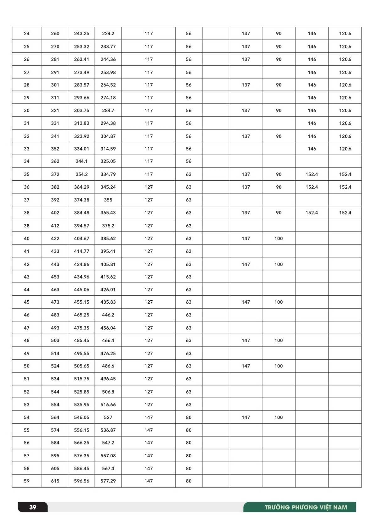 - Đường kính gù (Dh): phổ biến 60 – 147 mm