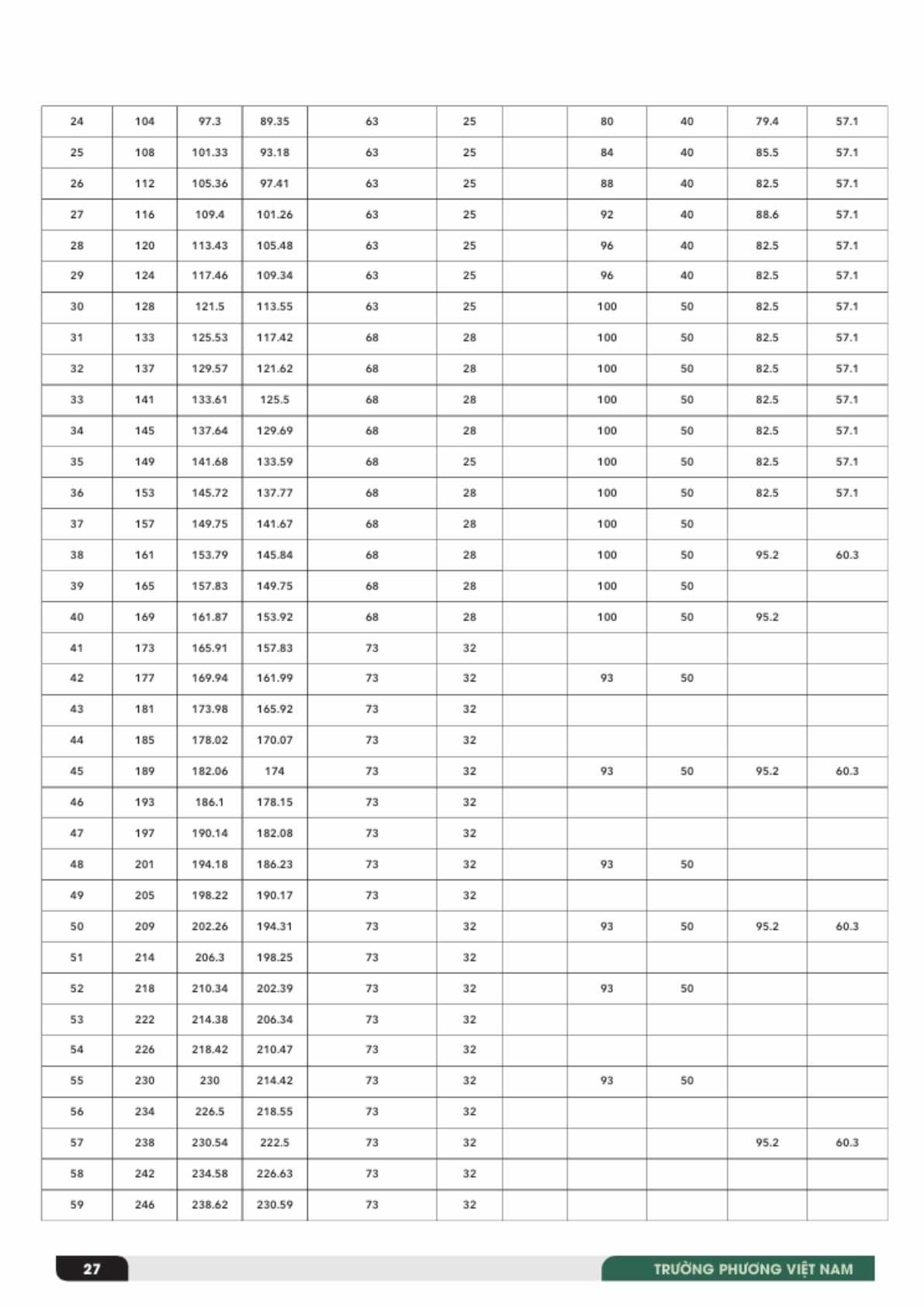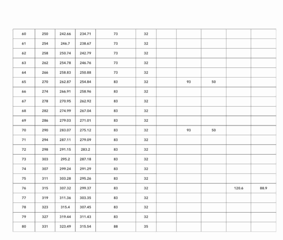 - Đường kính ngoài (Do): khoảng 38 mm → 331 mm