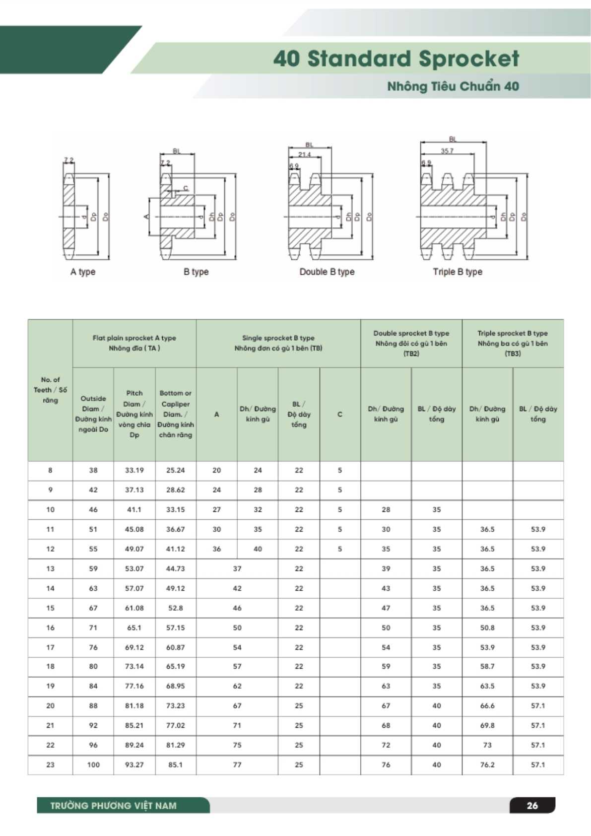 - Nhông 40-3: 3 dãy răng (Triplex)